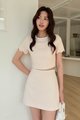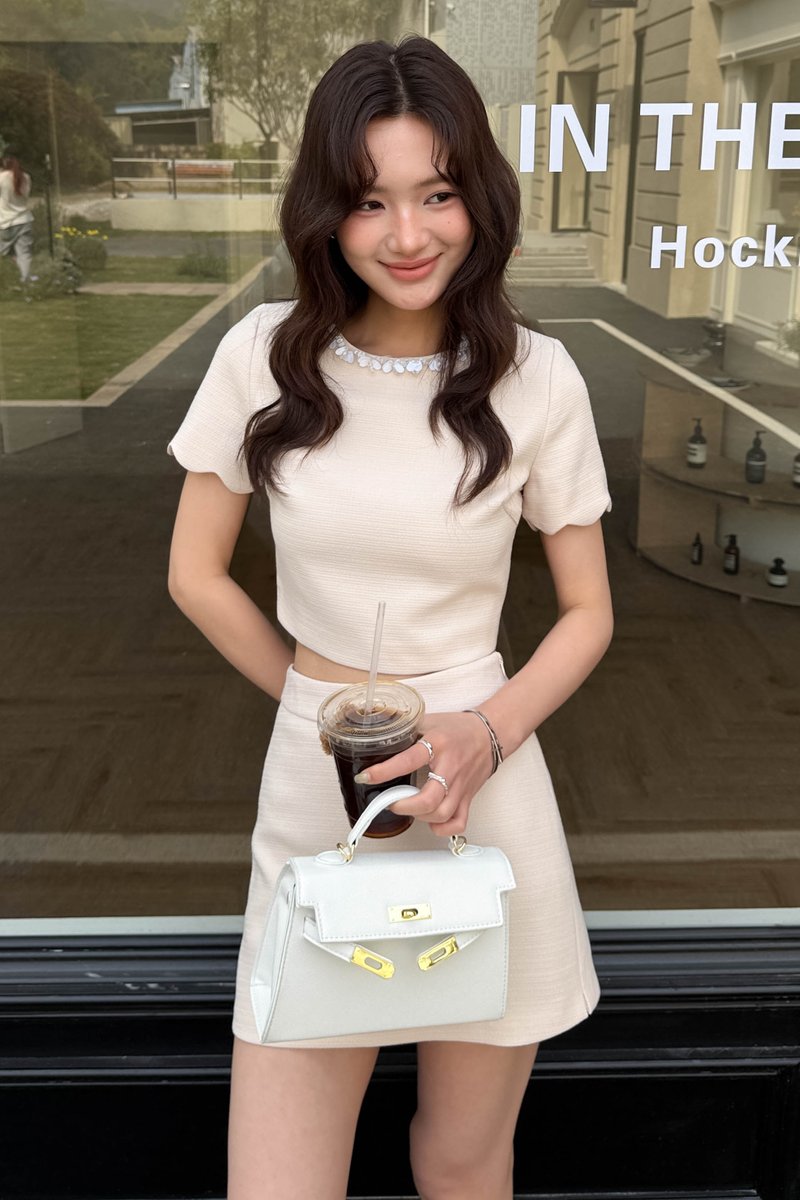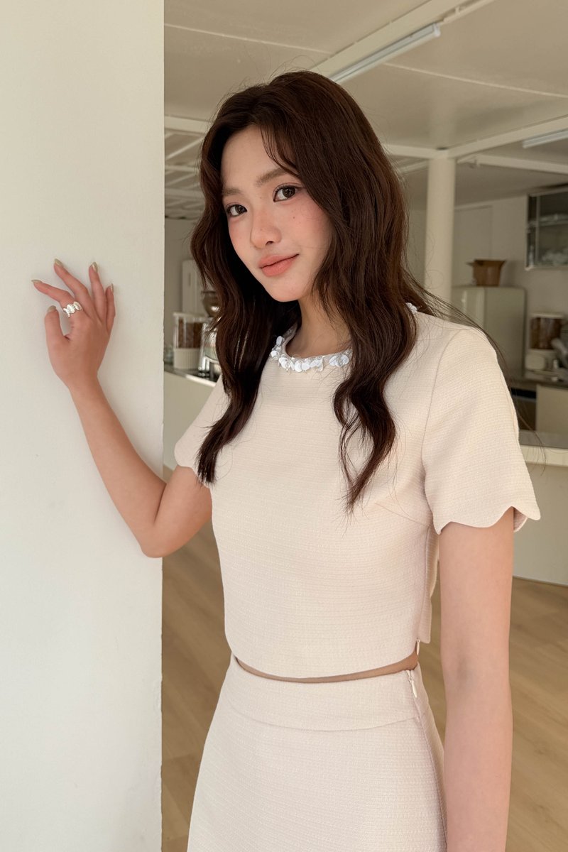 LIX TWEED CRYSTAL PETAL TOP IN NUDE