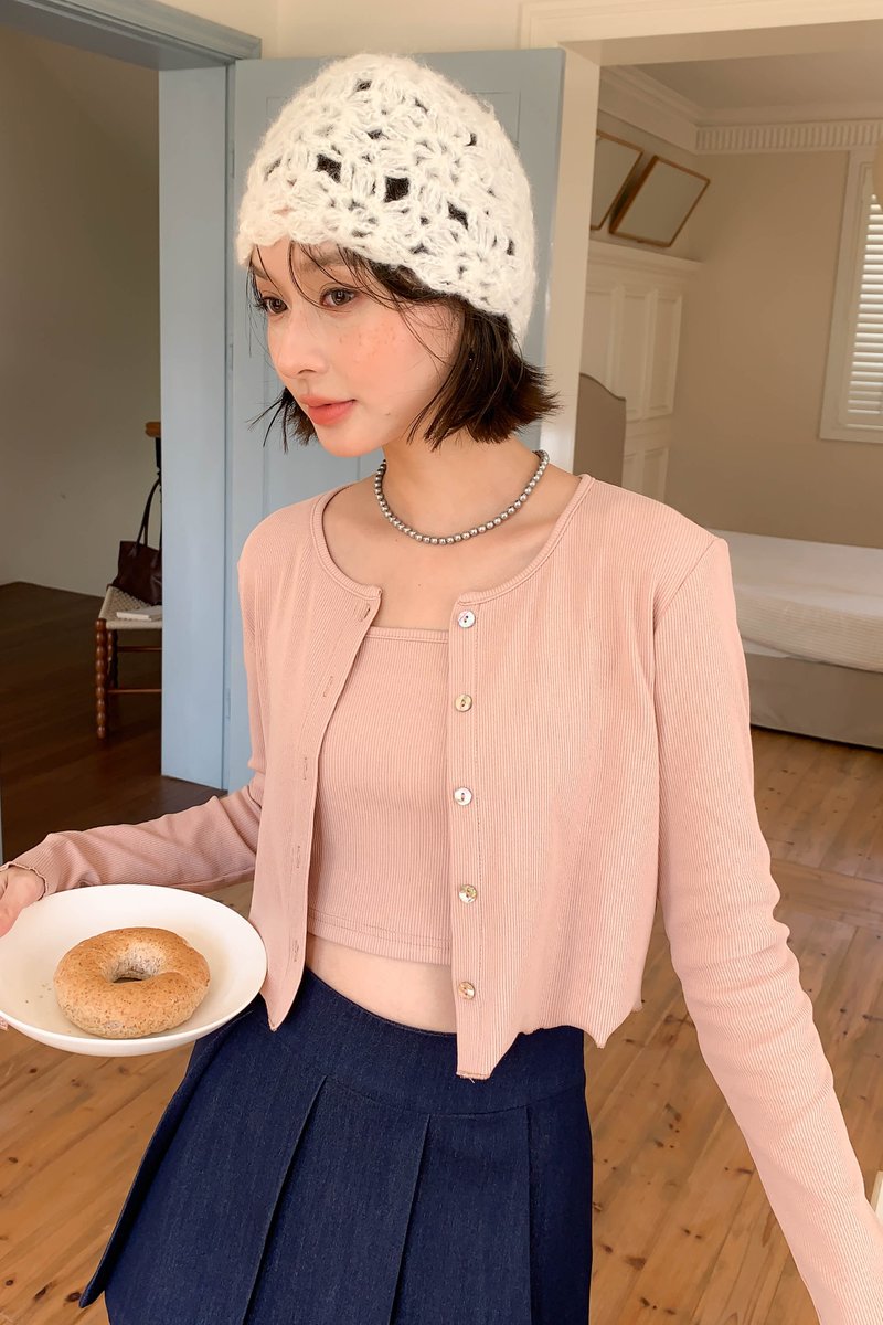 AU CARDIGAN SET IN CORAL