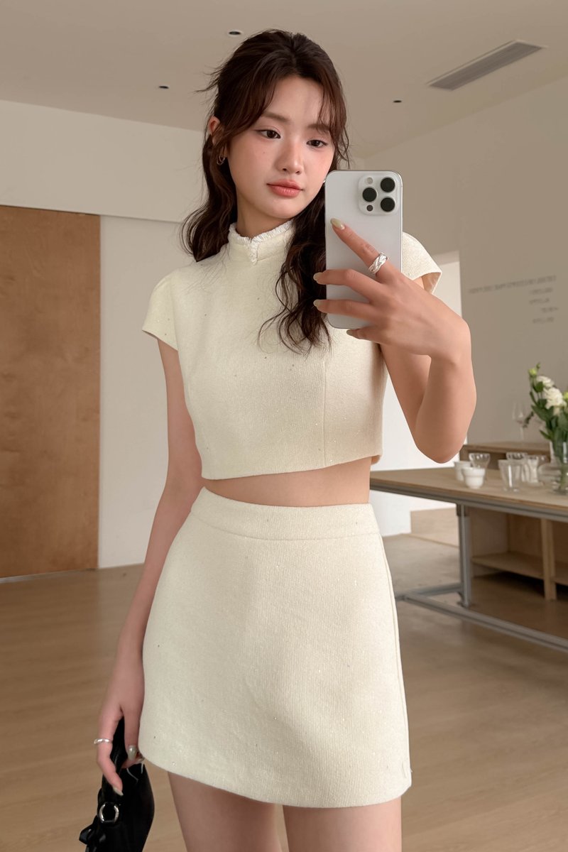 CLASSIC TWEED GLITTER SKORT IN BUTTER