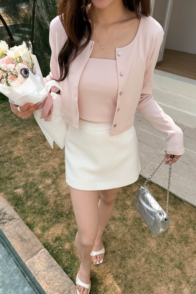 CLASSIC TWEED GLITTER SKORT IN WHITE