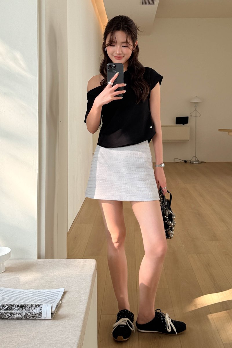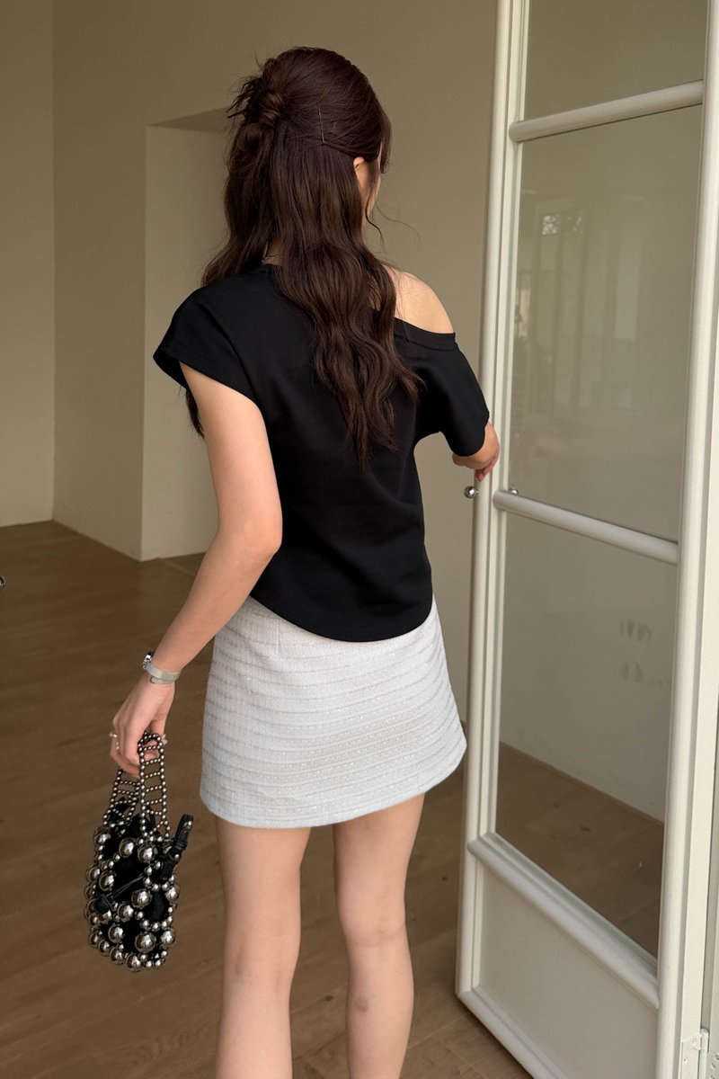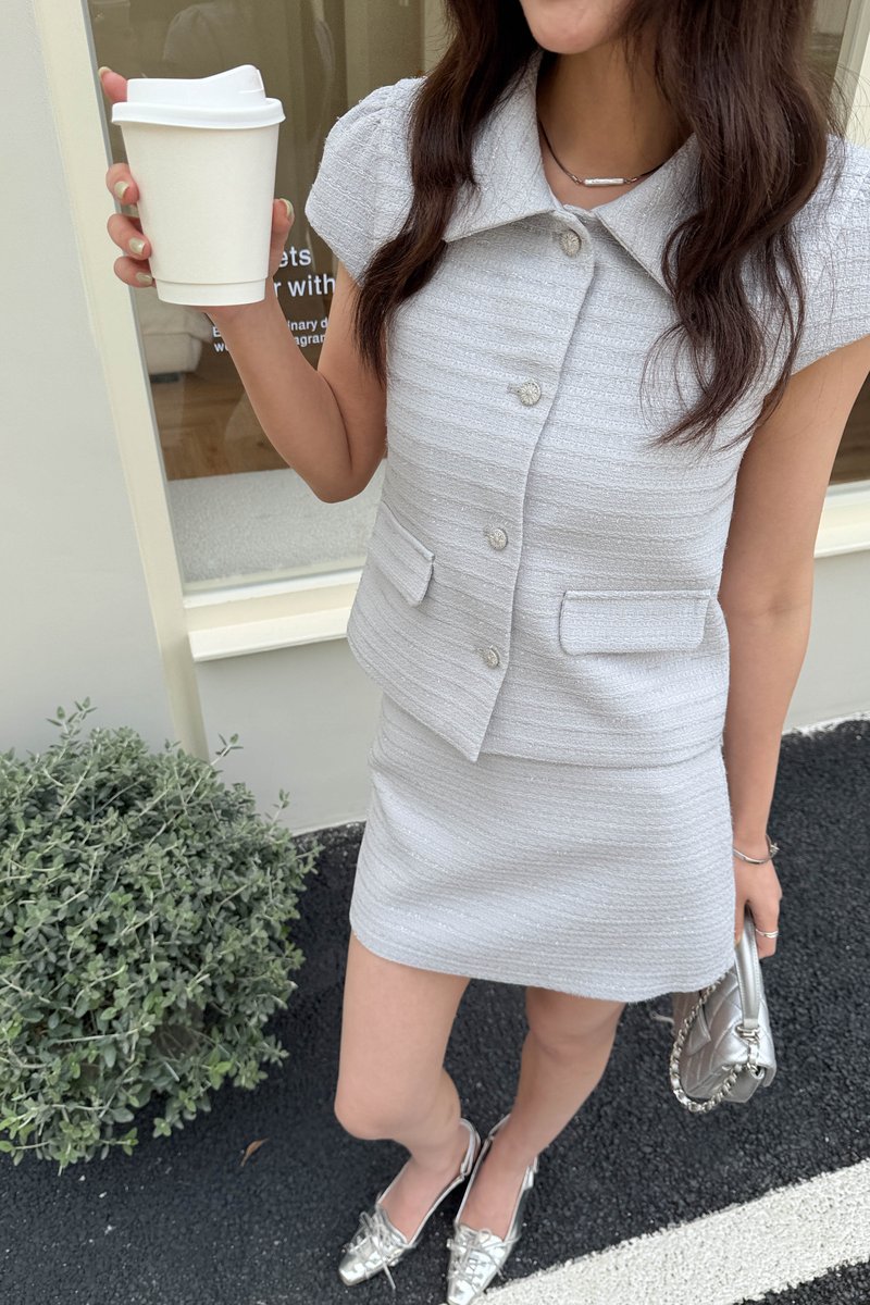 ÉLIE SHIMMER TWEED SKIRT IN GREY