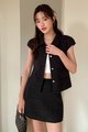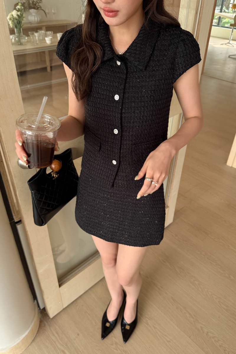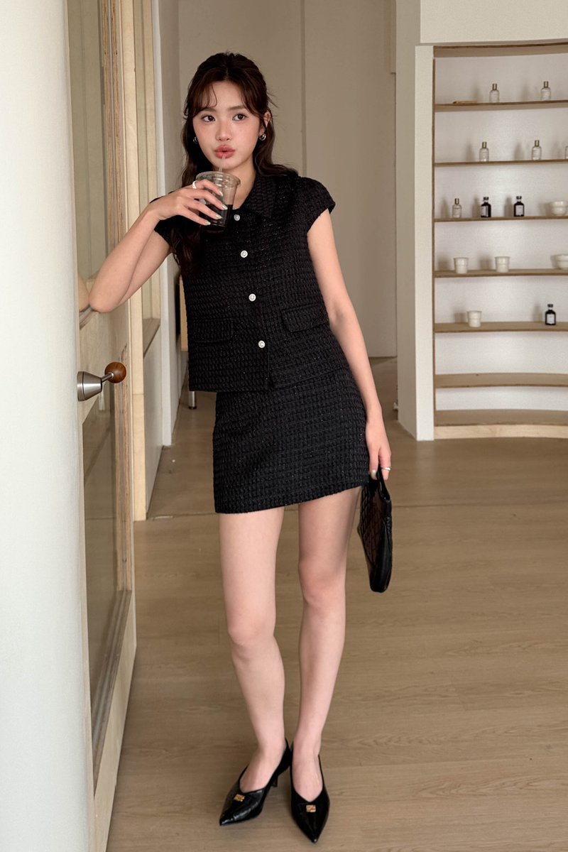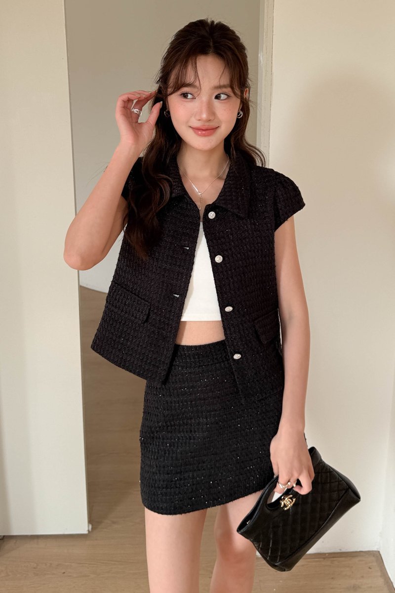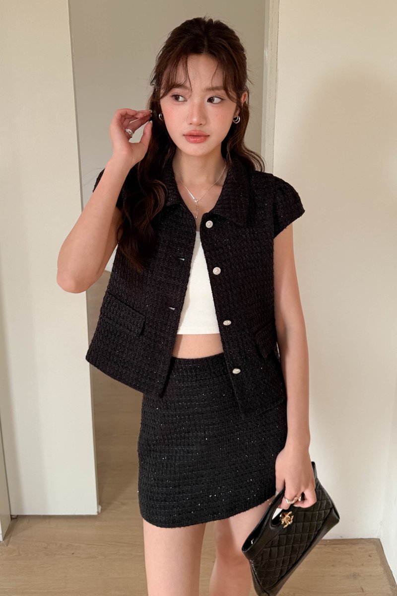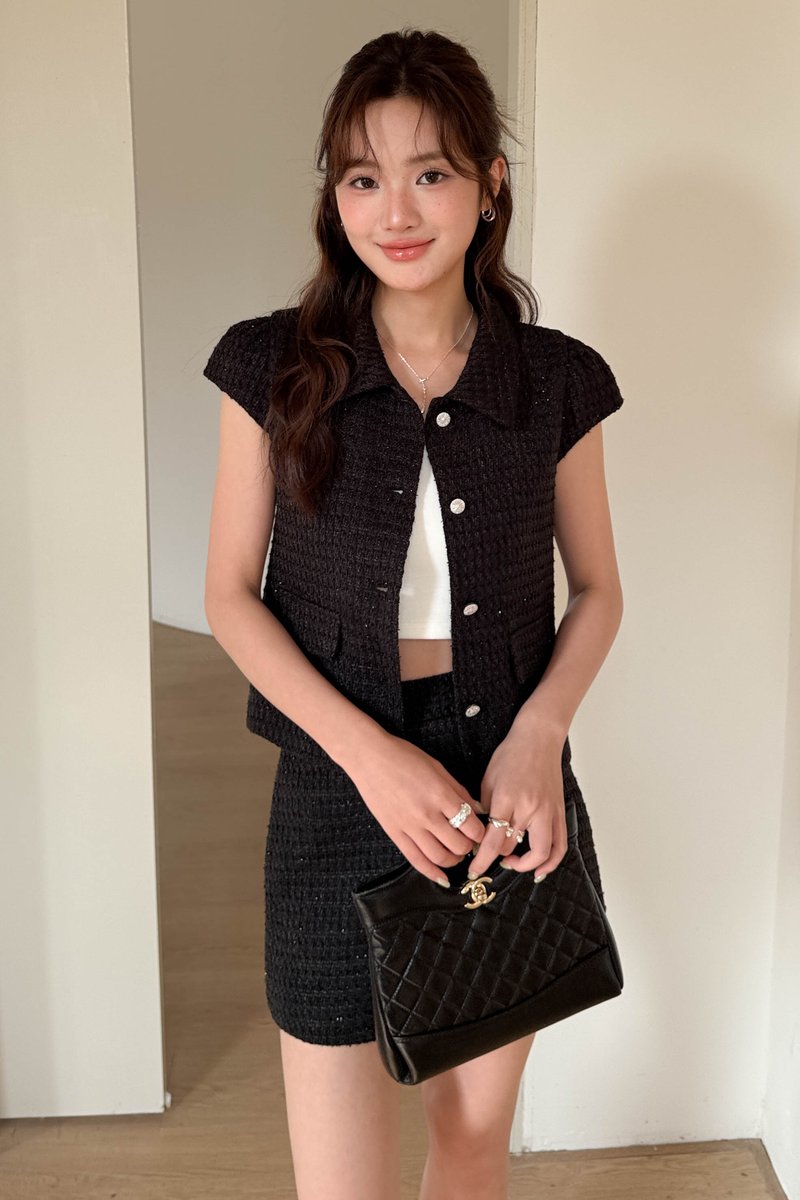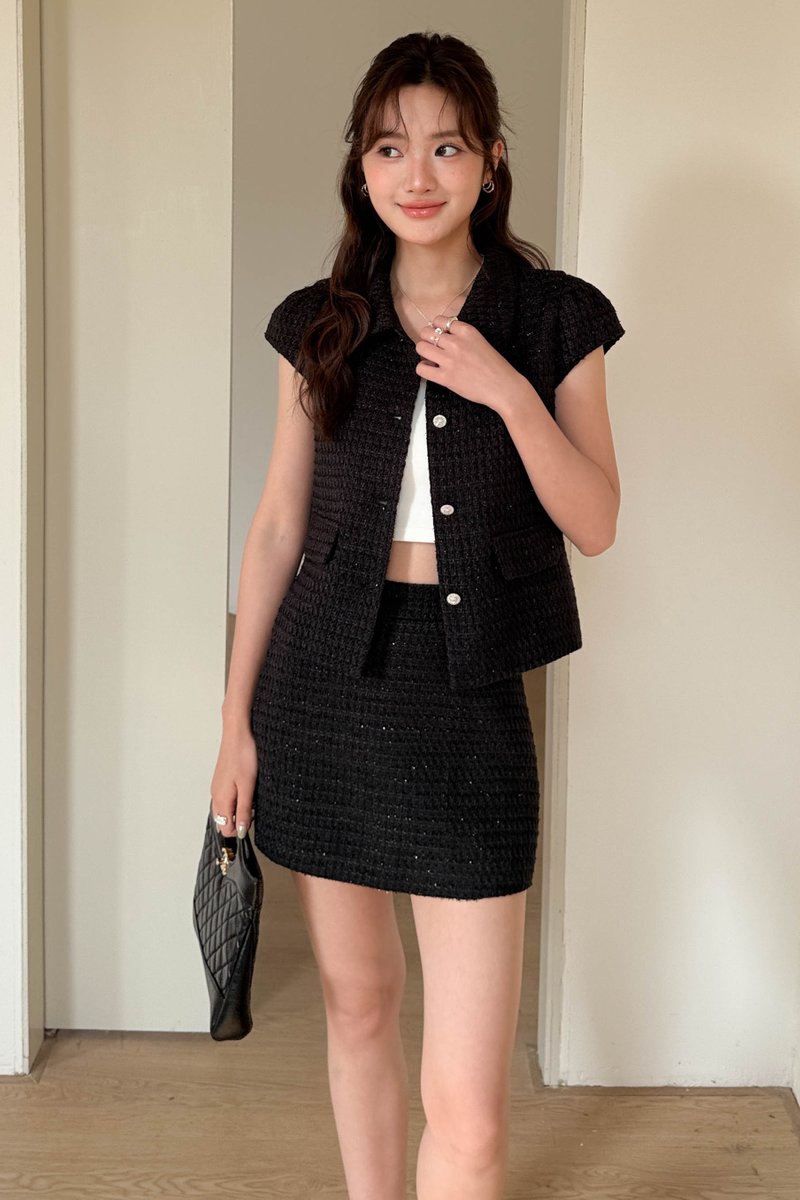 ÉLIE SHIMMER TWEED TOP IN BLACK