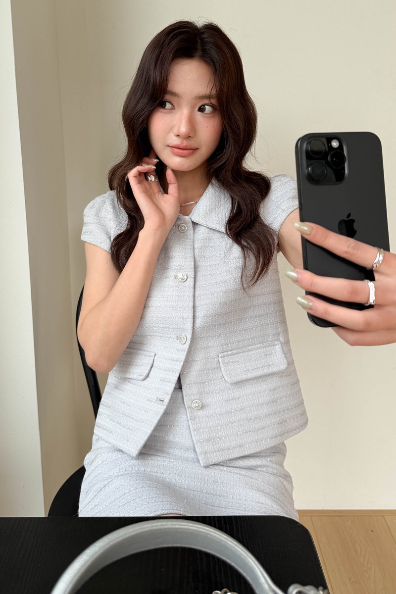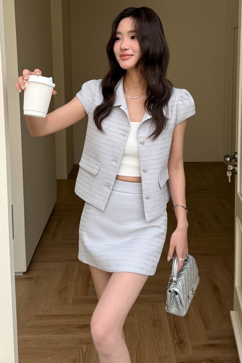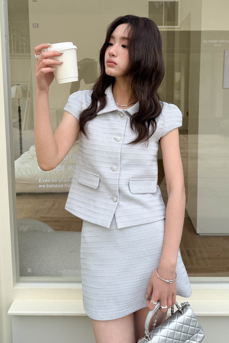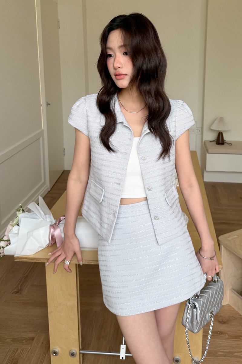 ÉLIE SHIMMER TWEED TOP IN GREY