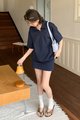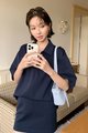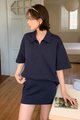 FAE EVERYDAY OVERSIZED POLO COLLAR TOP IN BLUE