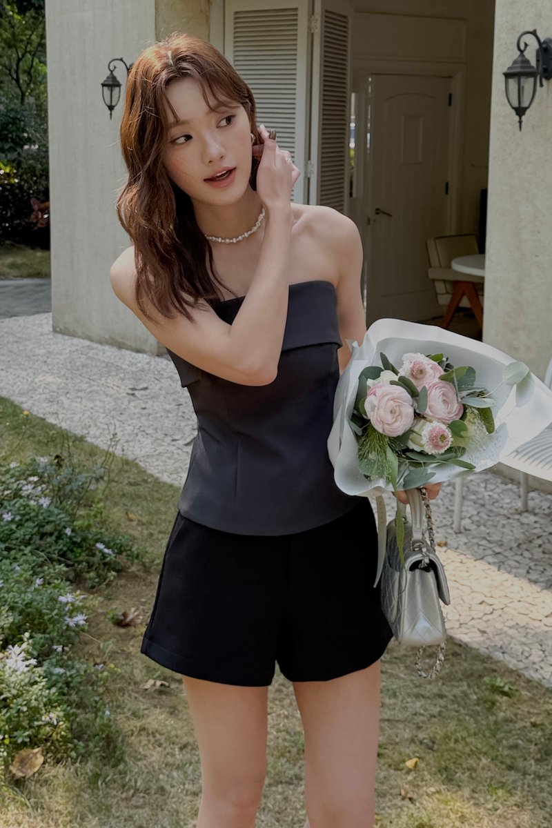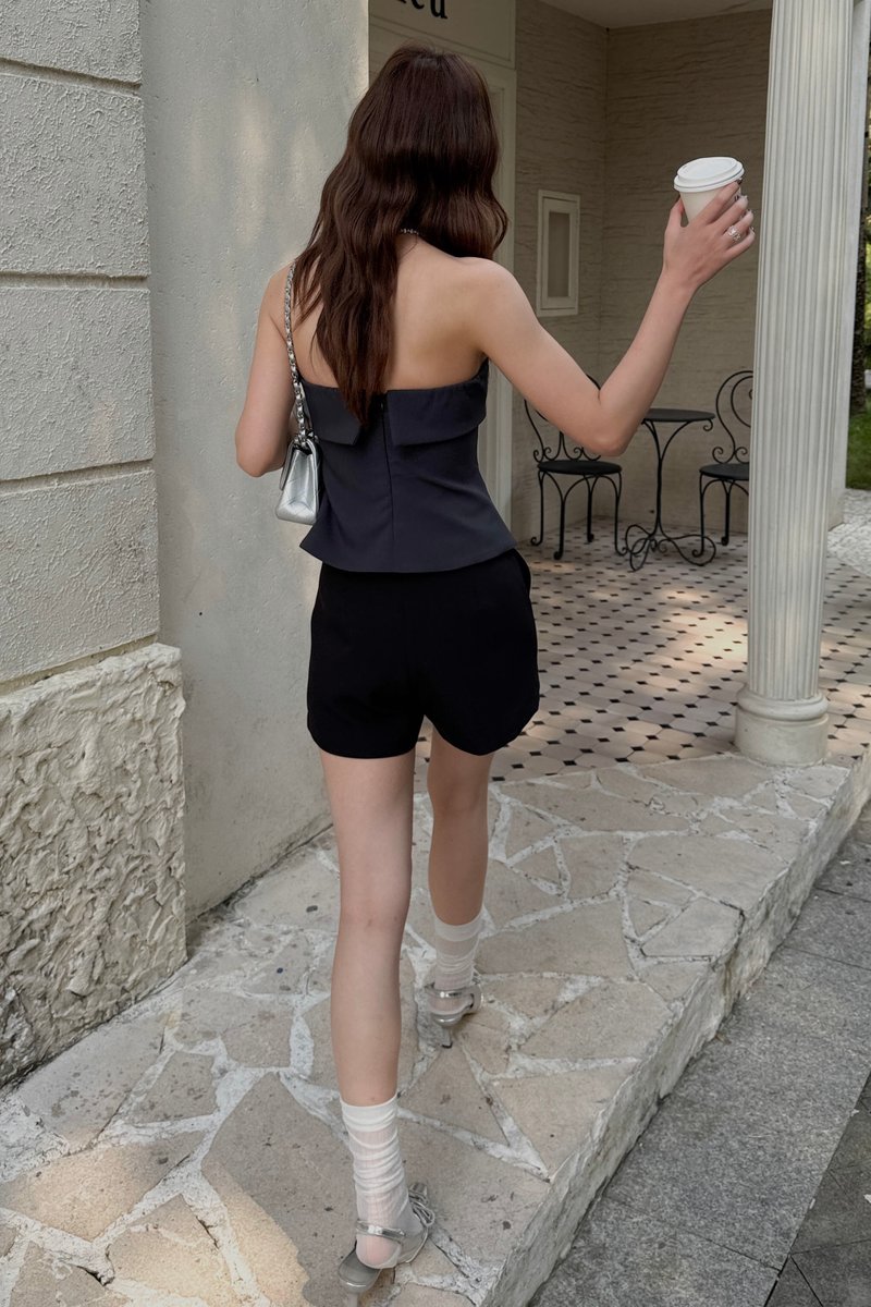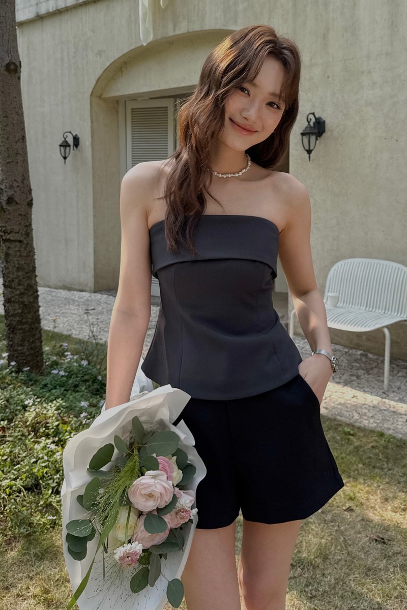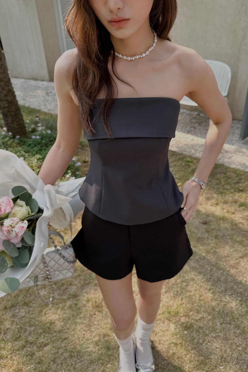 FOLD-OVER BANDEAU TOP IN GREY