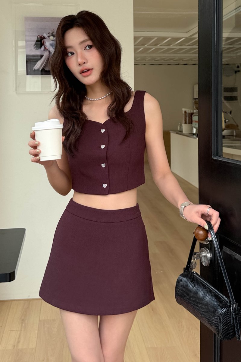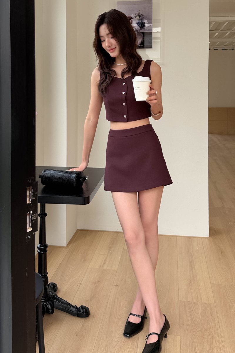 HEIROOM TWEED TOP IN WINE