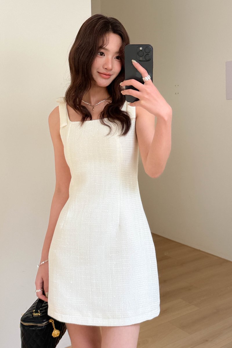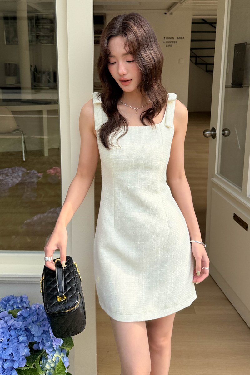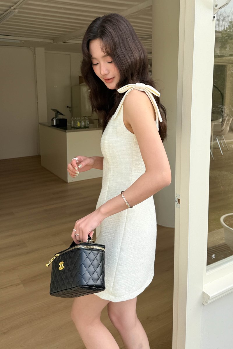 LE MER TWEED BOW-STRAP DRESS IN BUTTER