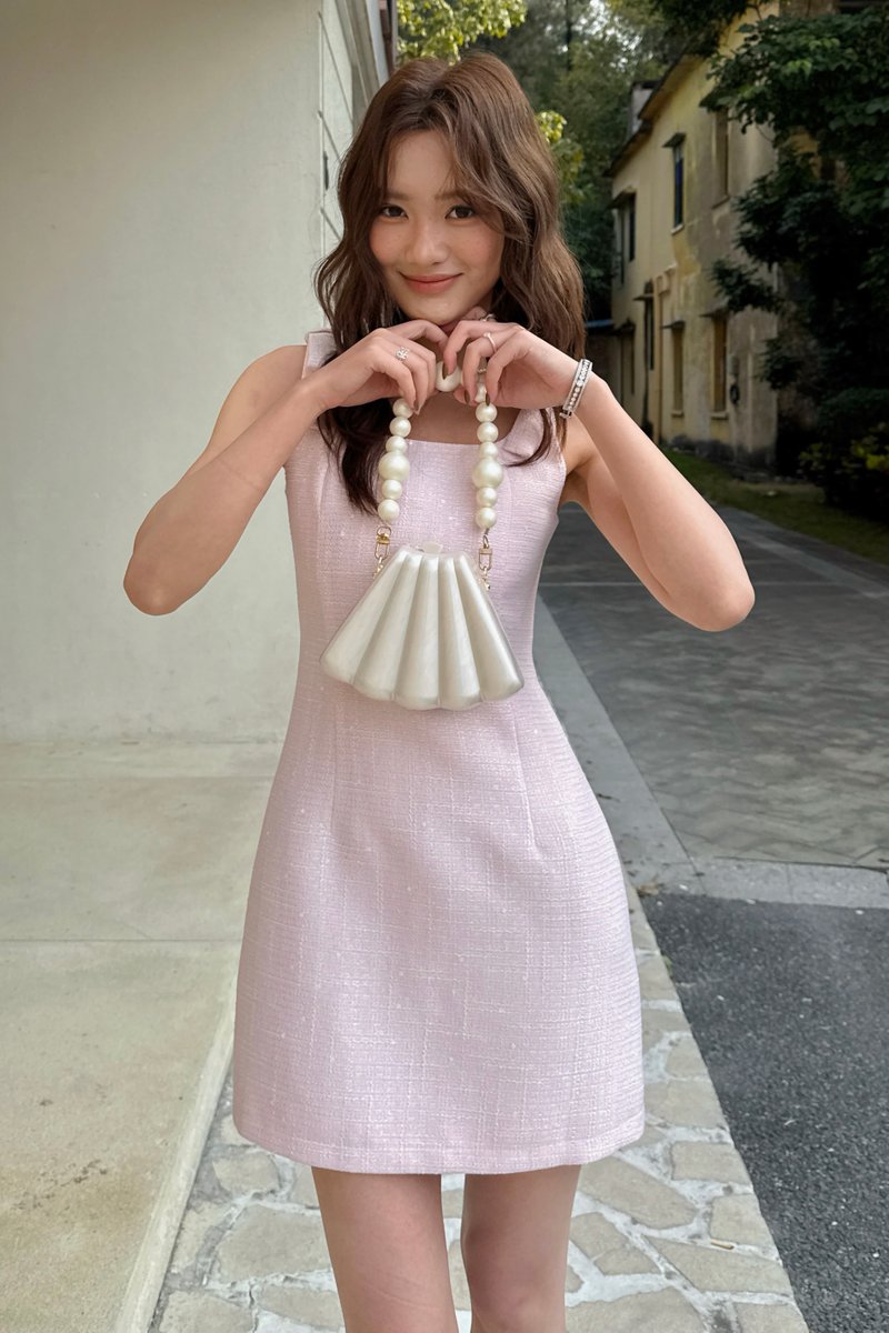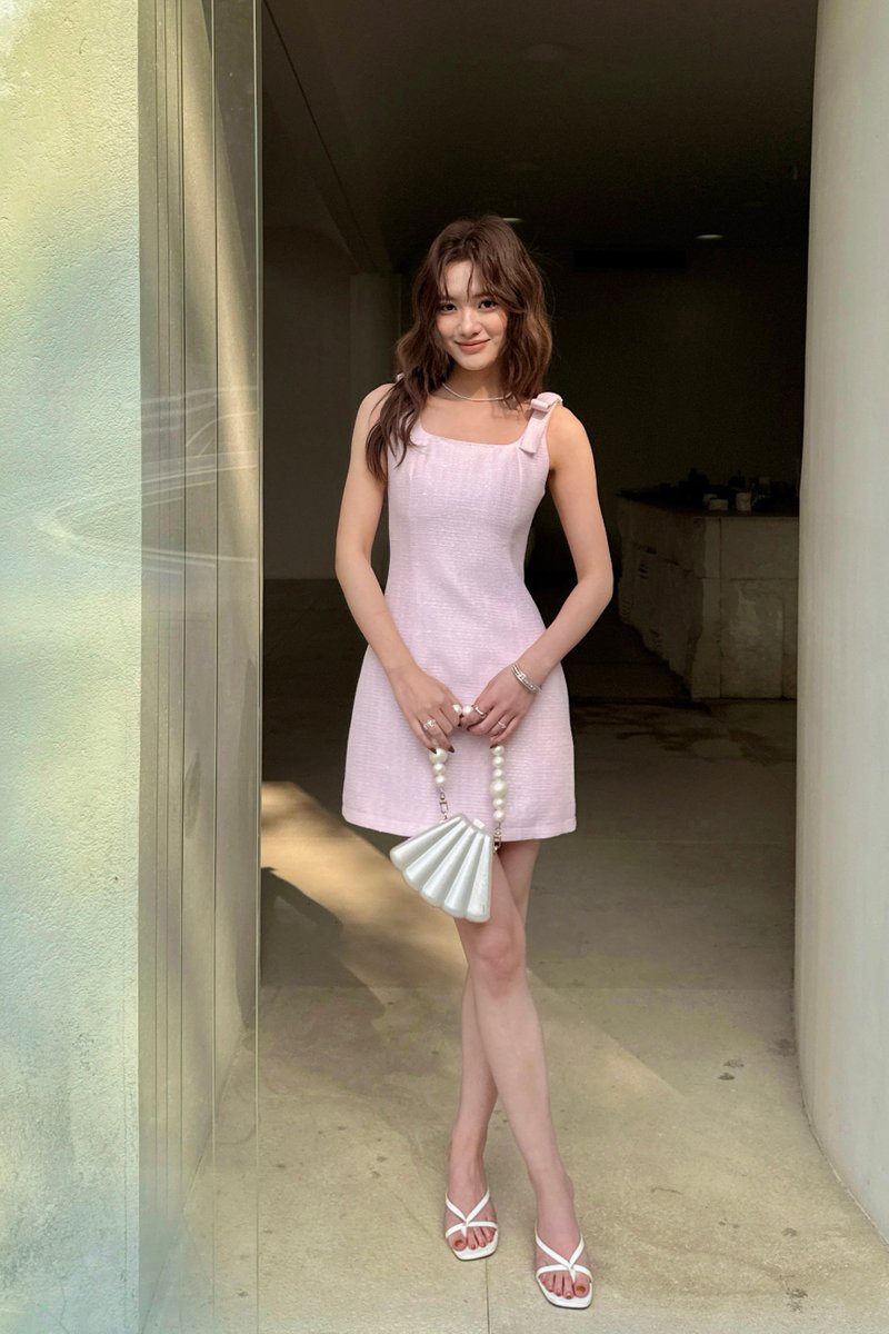 LE MER TWEED BOW-STRAP DRESS IN PINK