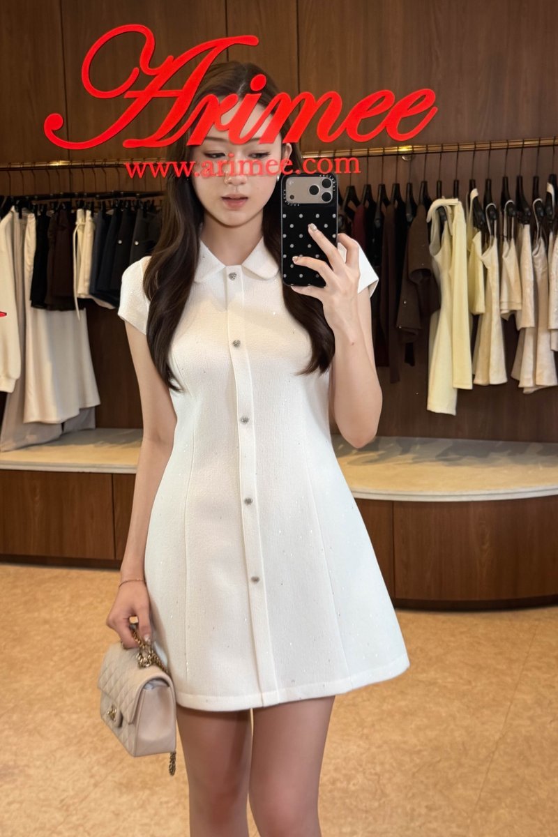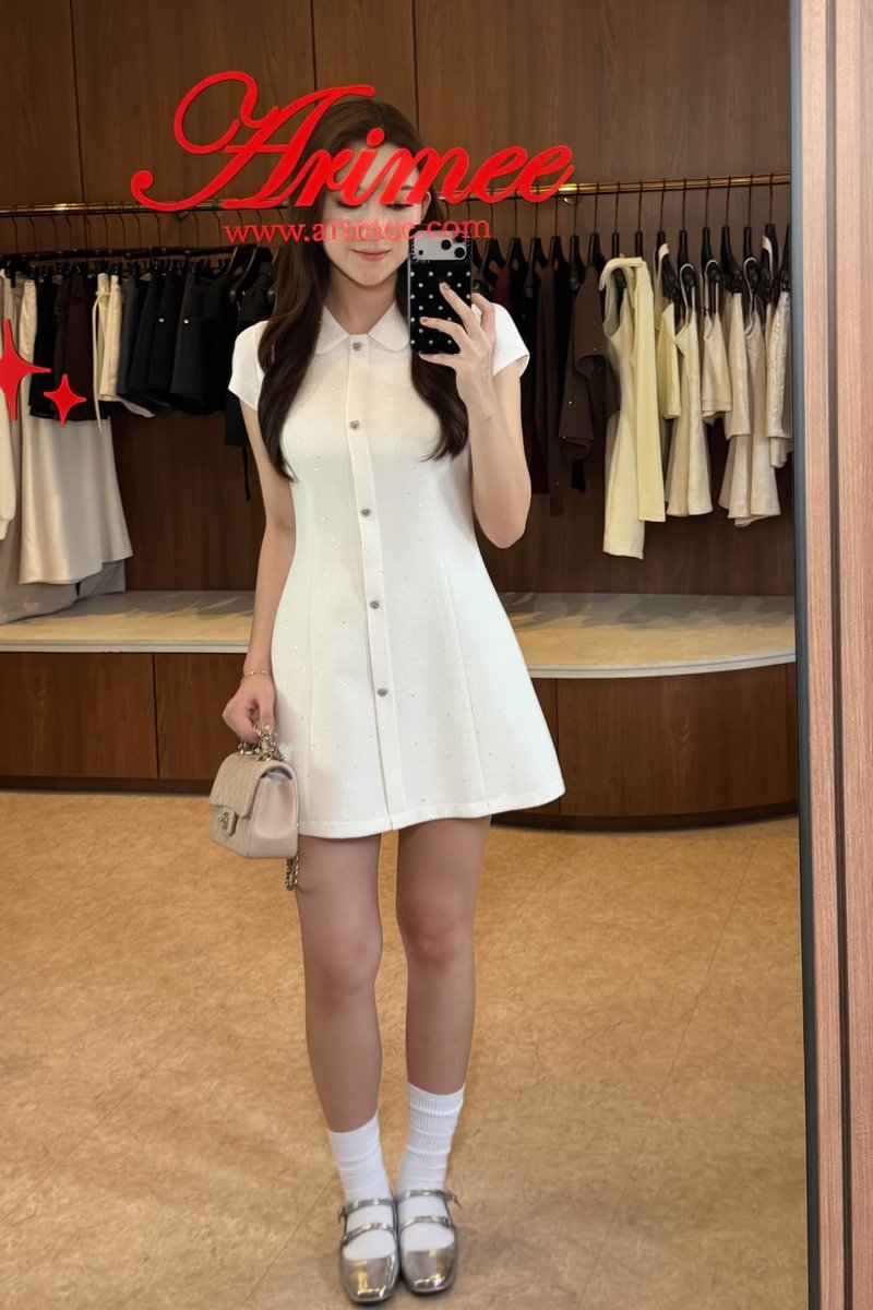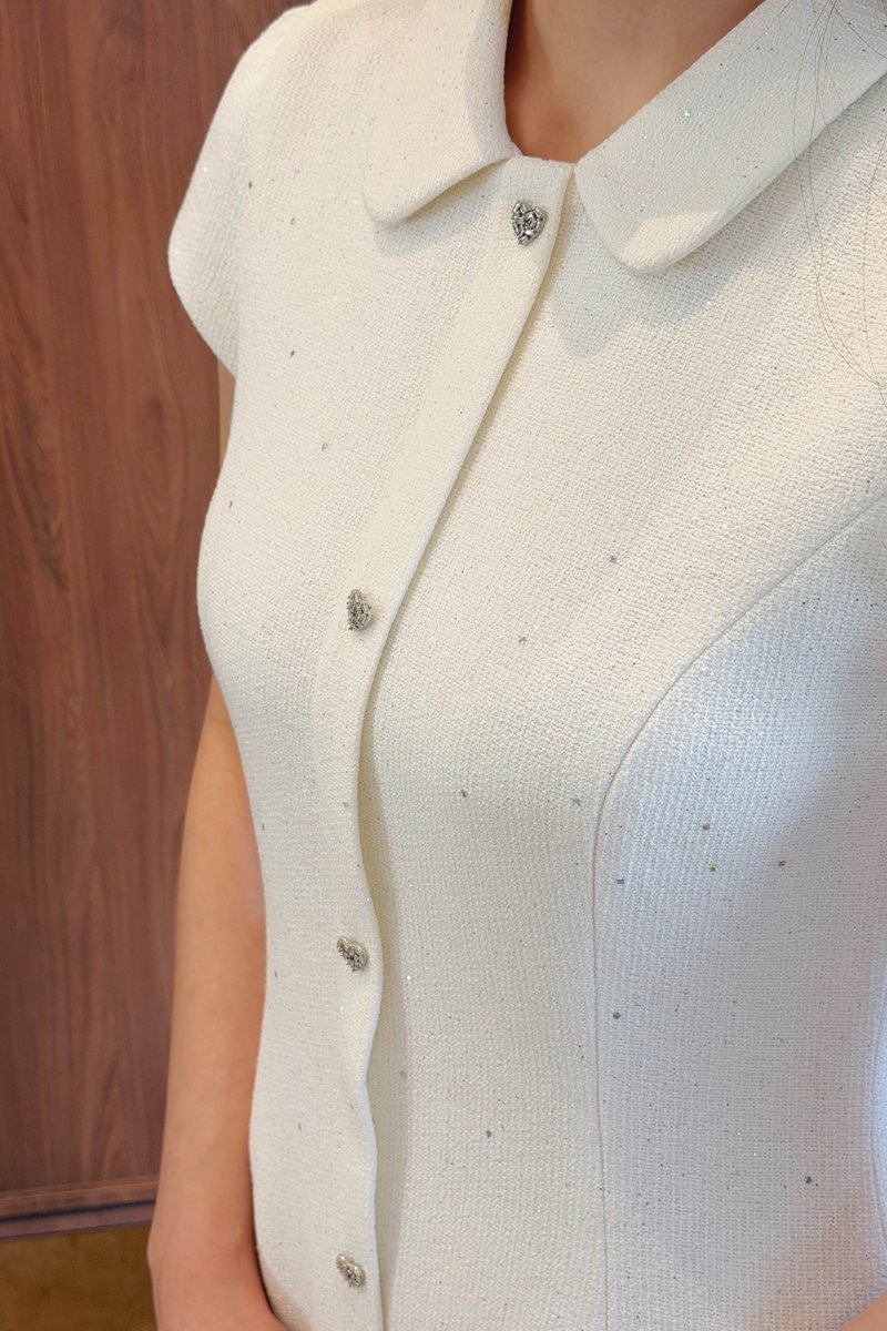 LIX CLASSIC GLITTER TWEED DRESS IN WHITE