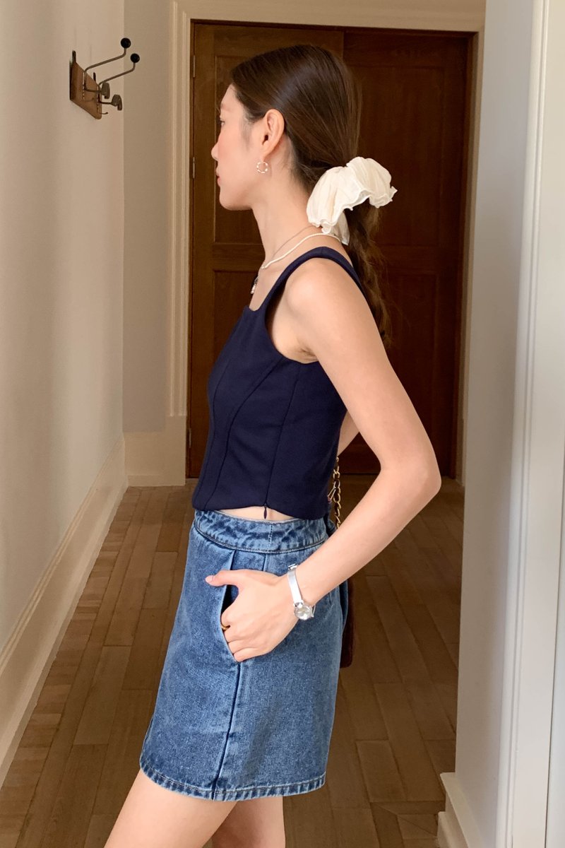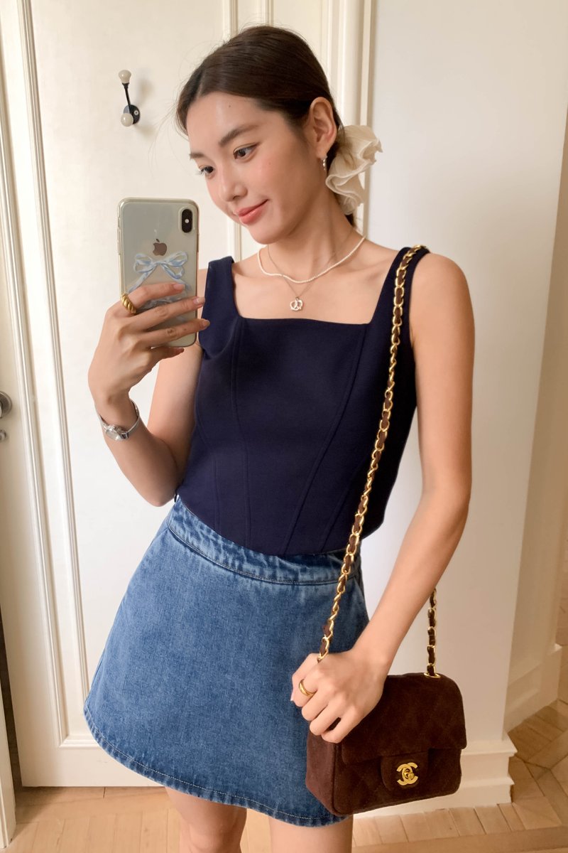 LUNE SQUARE NECK TOP IN BLUE