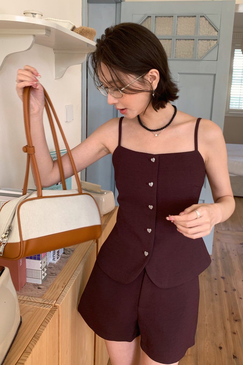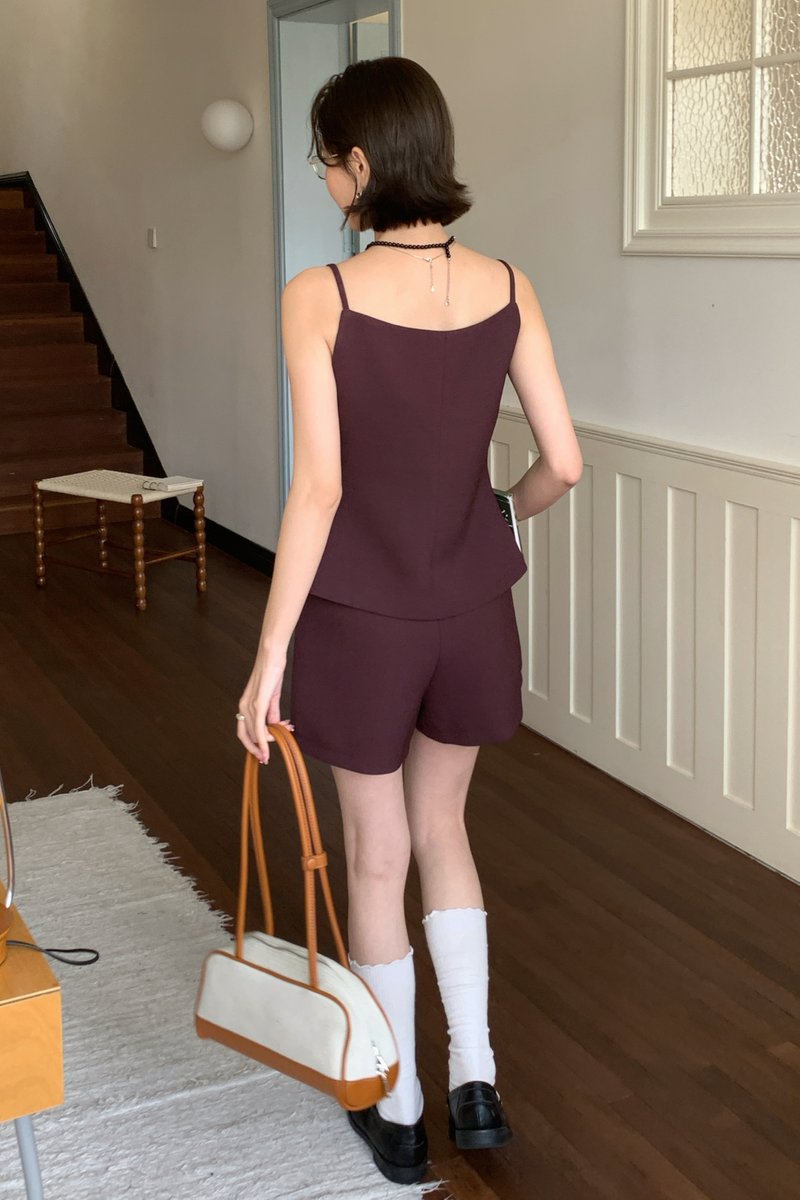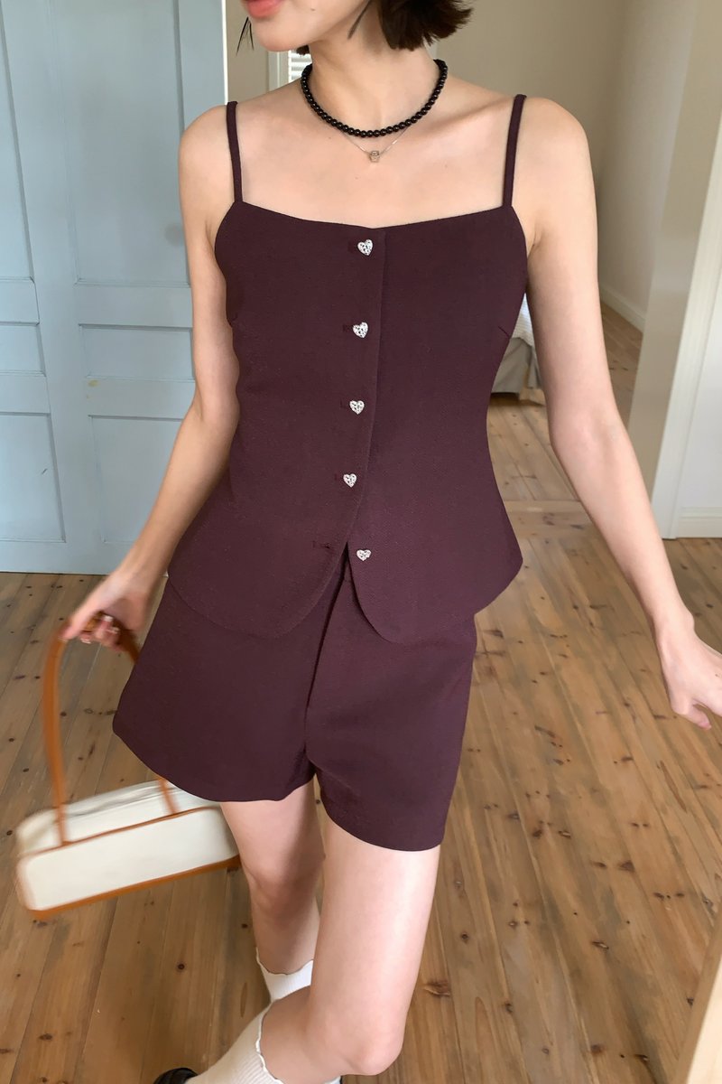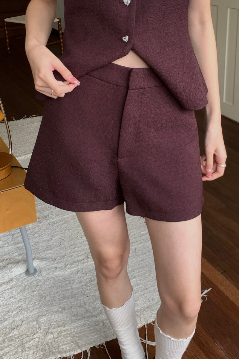 (BACKORDER XS-L) LOVE IN THE AIR TWEED SHORT IN WINE