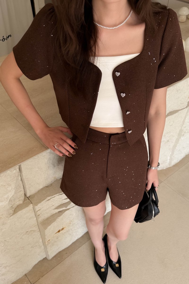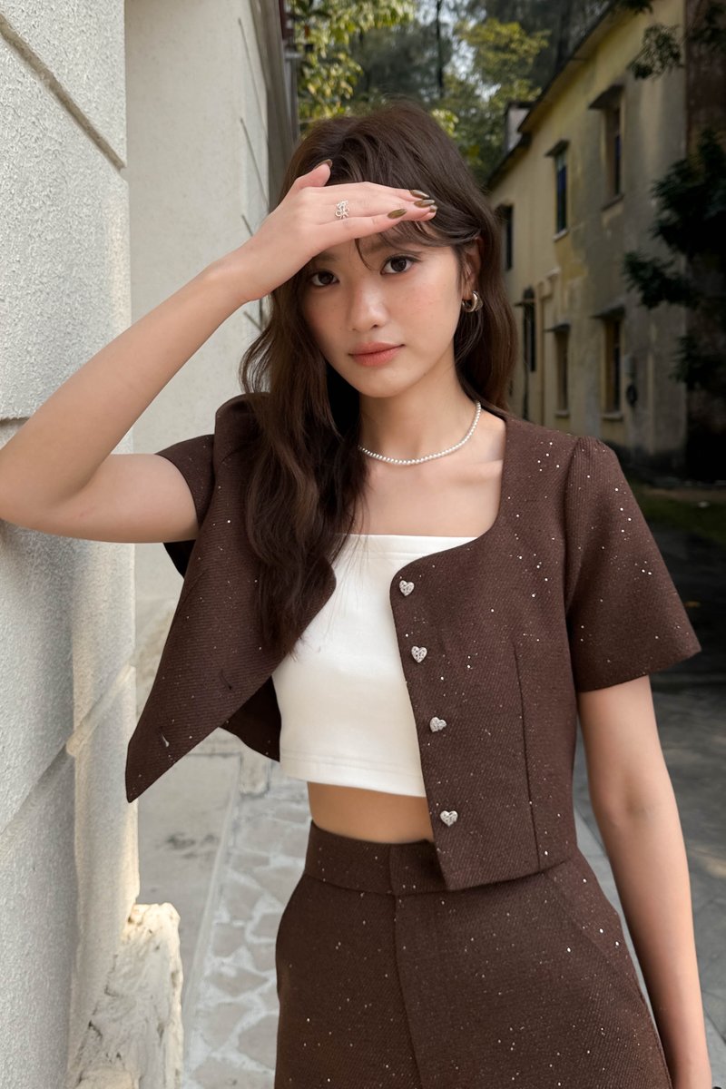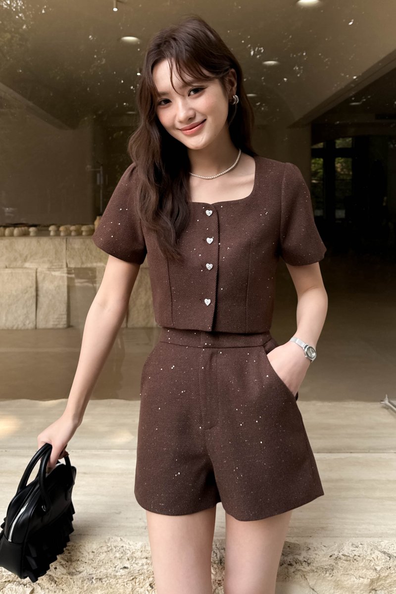 TOVE TWEED GLITTER TOP IN BROWN