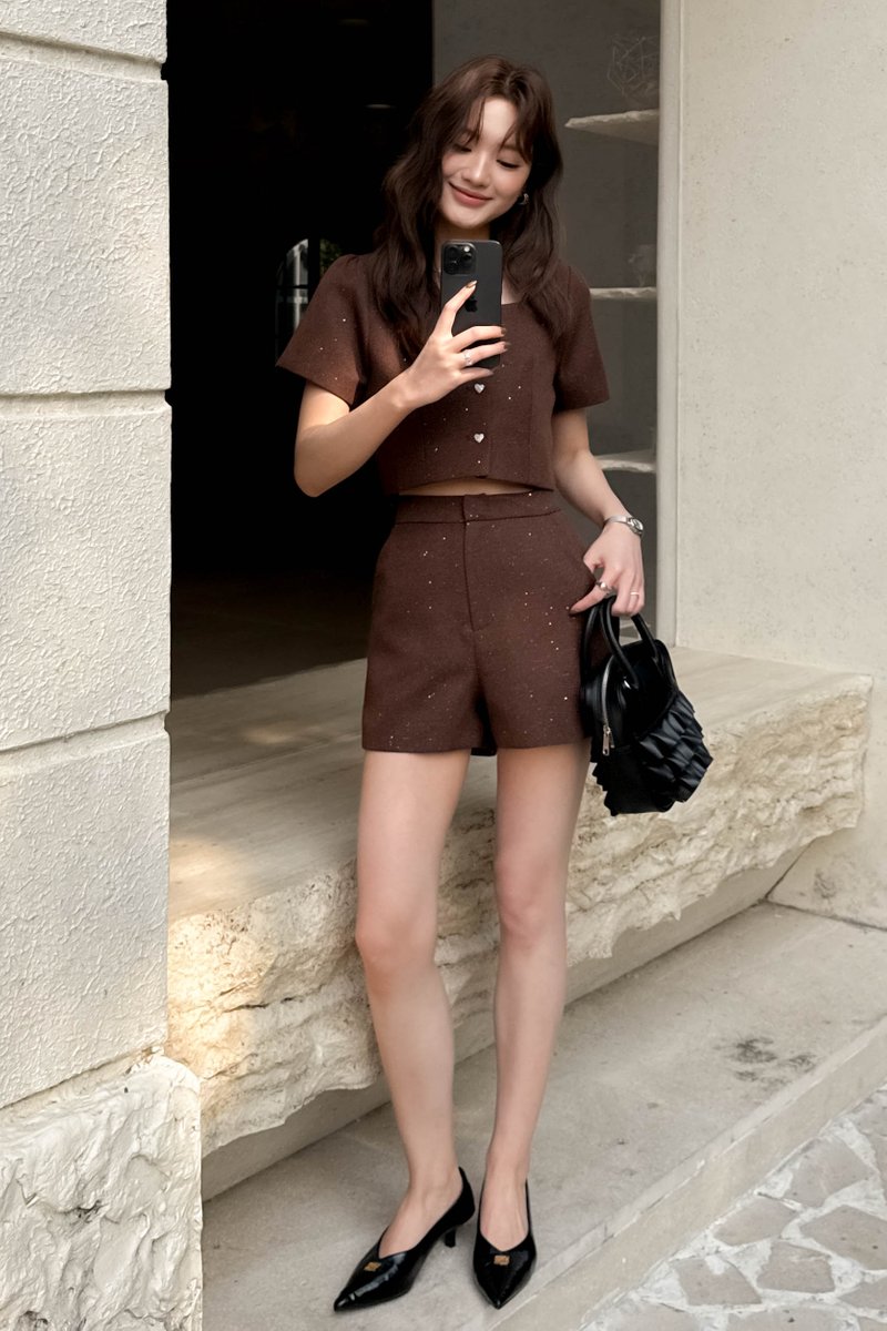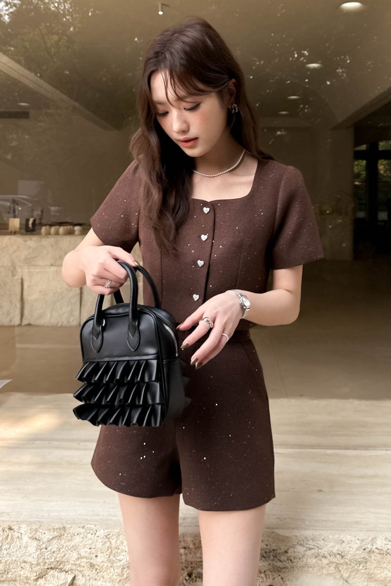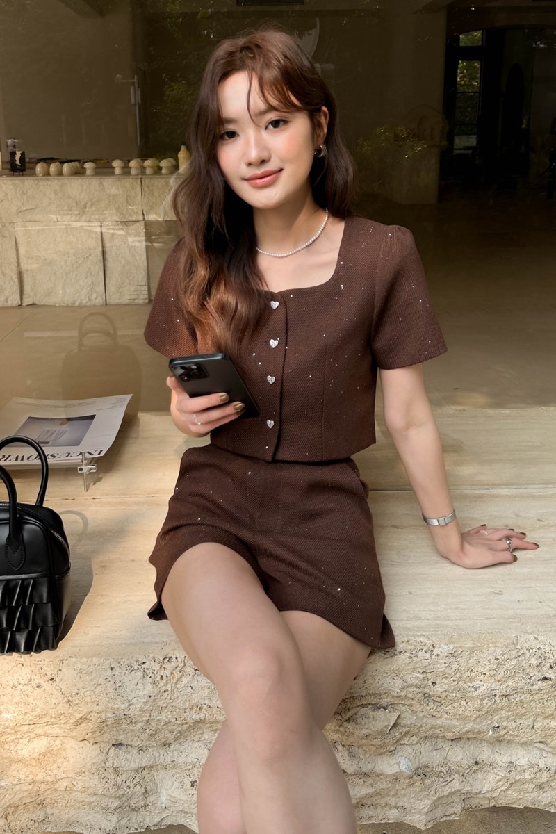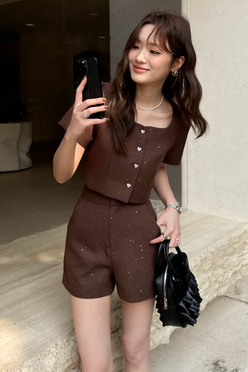 TOVE TWEED GLITTER TOP IN BROWN