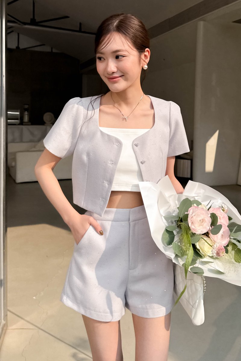 TOVE TWEED GLITTER SHORT IN GREY