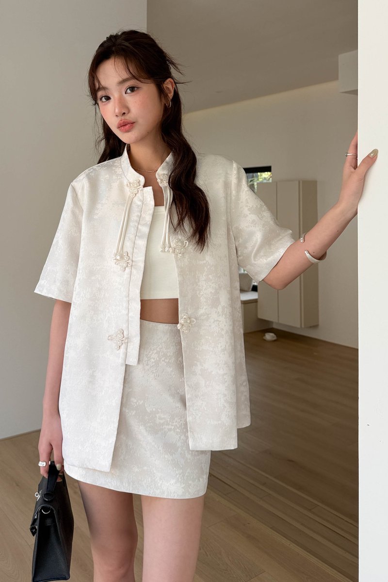 XI ORIENTAL OVERSIZED TOP IN CHAMPAGNE