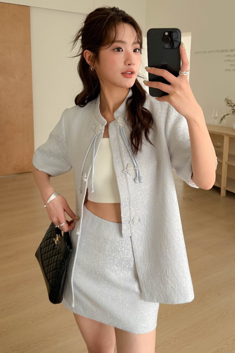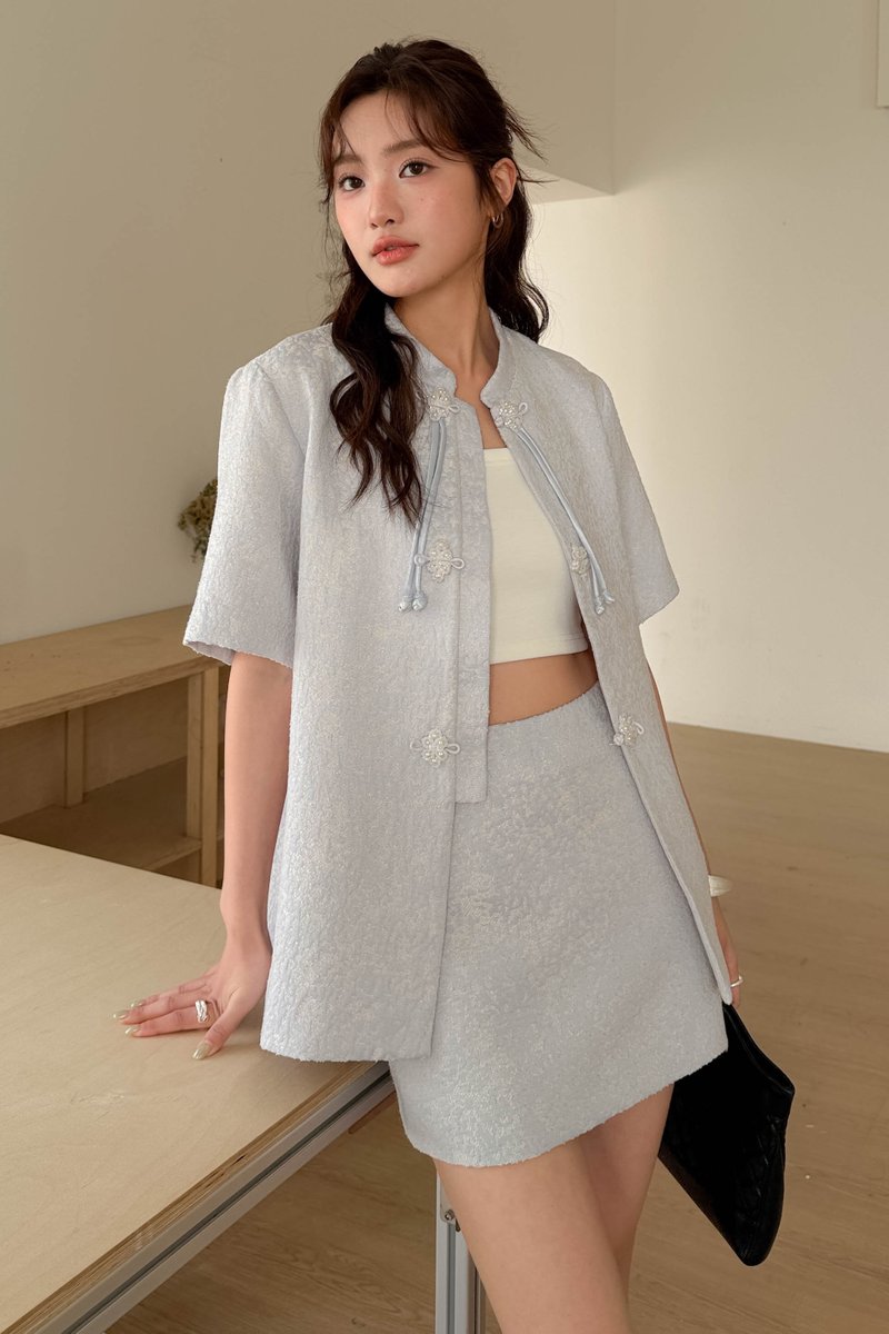 YIN ORIENTAL TWEED SKIRT IN BLUE