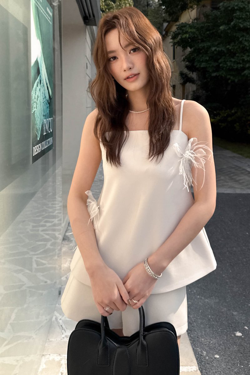 YU FLOWY SPAGHETTI STRAP TOP IN CREAM
